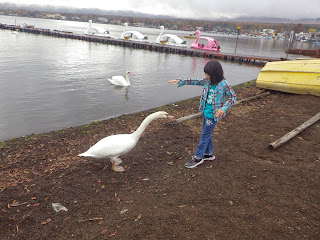 around one and stopped to look at swans investigating their older cousins.