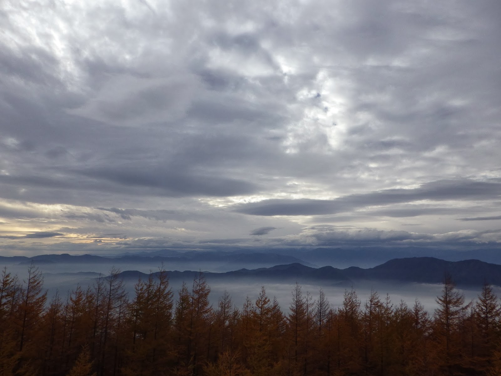 Fuji had it been visible. The sun was out where we were, but at the top of