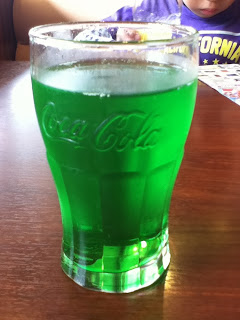 this bright green drink. It’s melon flavored Fanta! In the US, we only have